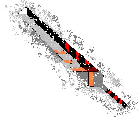 刃渡りは、箱の大きさとほぼ同じで約1m、刃の中央あたりに両の刃の方向に向かって赤いラインの溝が三本は入っていて、刀身はむき出しで赤い布が無造作に巻きついている。